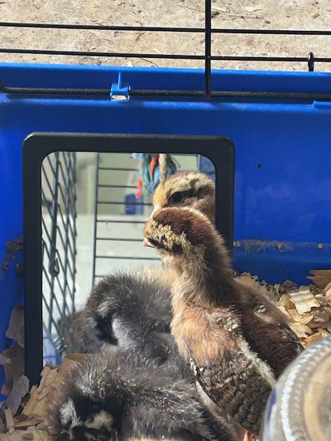 That’s the current headquarters for our newest batch of baby hens—six tiny fluffballs about two weeks old, still growing into their legs, feathers, and attitudes. They’re cute, yes… but also dramatic.